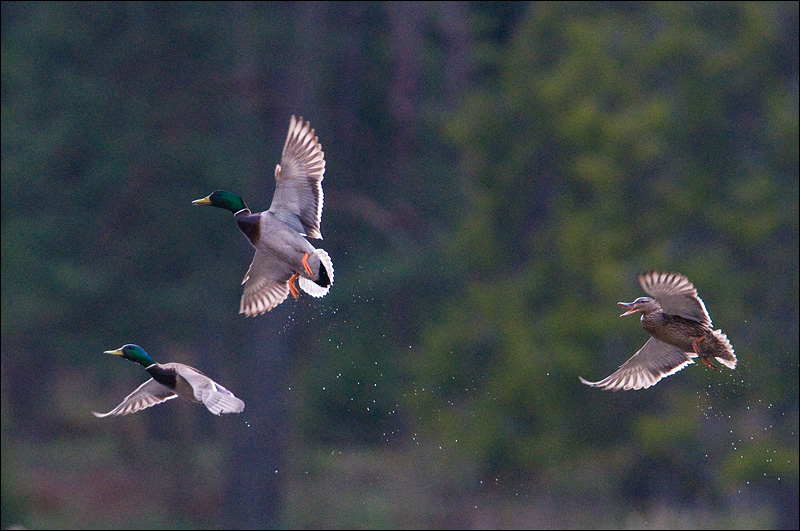 08-05-02. Intressant triangeldrama som pågick i flera dagar. En ensam gräsandshane jagade ett par. De utsatta fåglarna sökte sig ofta till människor för då fick de vara i fred.