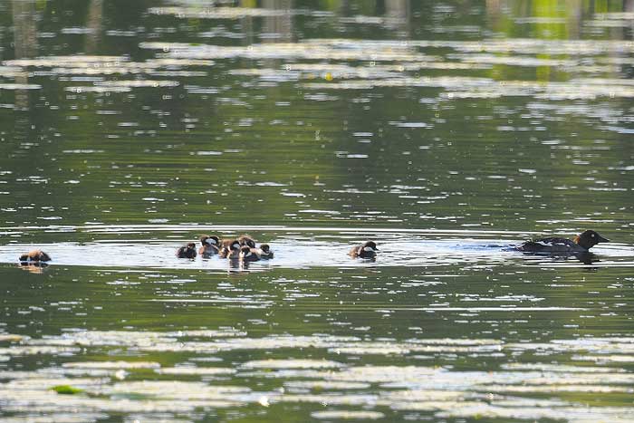 Fler knipungar i Dalkarlskärret. Den här honan hade 13 ungar i släptåg.