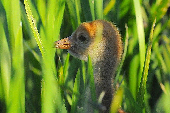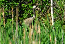 Den enda vuxna trana vi såg befann sig på andra sidan kärret, långt bort från tranungen.