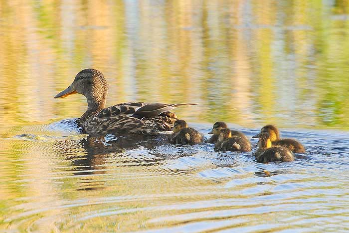 Tidig morgon vid Dalkarlskärret.. En gräsandshona med sina fem ungar.