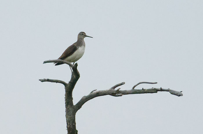 Kvällen vid Stora kärret gav inte så mycket nytt. En skogsnäppa satt tyst högt upp i ett av de döda träden