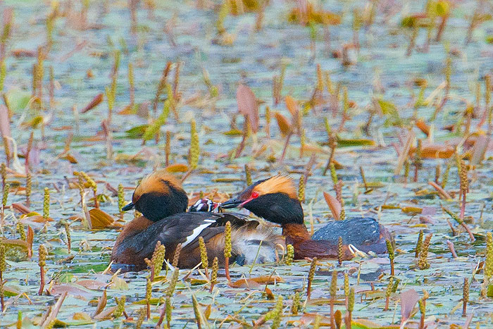 I Stora kärret matar svarthakarna flitigt sina ungar som ännu så länge håller sig till mammans (eller möjligen pappans) trygga rygg.