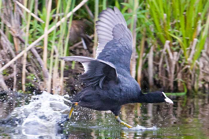 Ett par korta svängar i kväll. Först till Dalkarlskärret, där sothönorna forfarande har energi att hålla efter änder och andra sotönor.