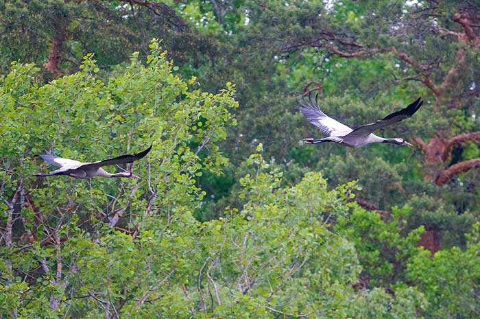 De två tranorna flög ett varv och gav sig sedan av igen,