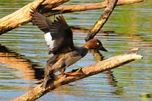 Titta jag är en skarv! Nej, inte alls, bara en krickhona som klättrade uppför en gren.