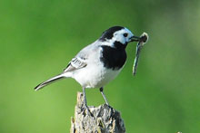 En sädesärla har fångat en slända och befriat den från vingarna.