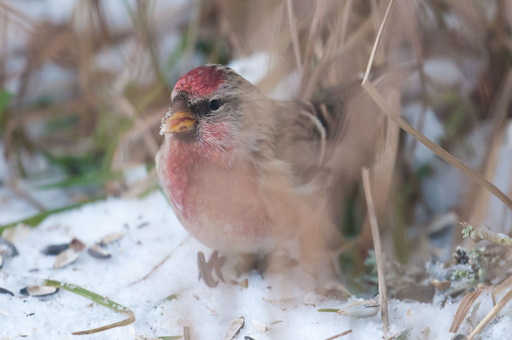 Verkar som om gråsiskorna har anammat vår matning, de syns allt oftare. Här är en hane.