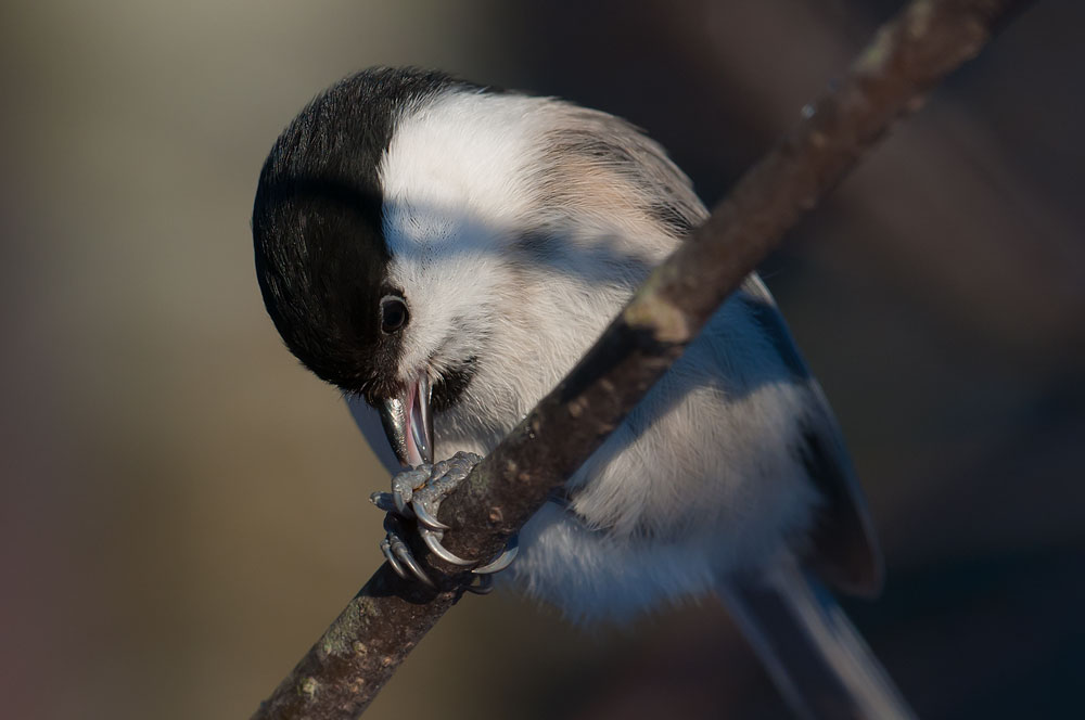 Talltitan har tagit med sig ett frö till ett buskage för at skala det i lugn och ro.