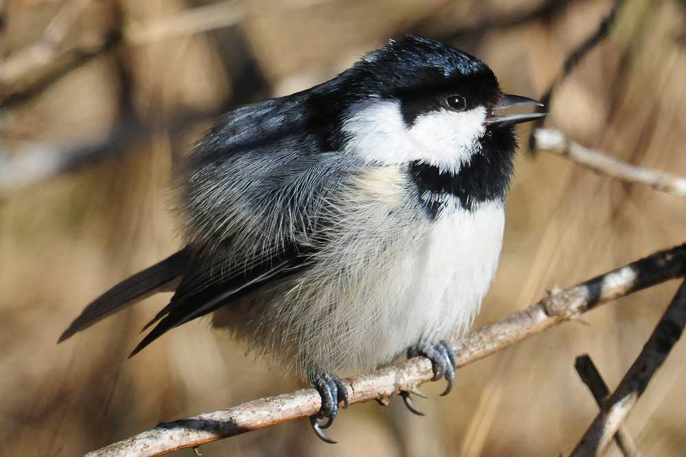 En svartmes som verkar njuta av vårsolen.