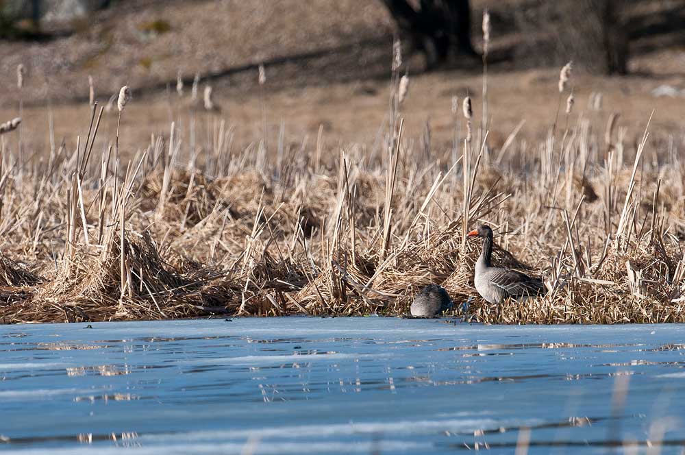 Årets första grågäss. Nu har vi två kanadagäss och två grågäss i kärret.