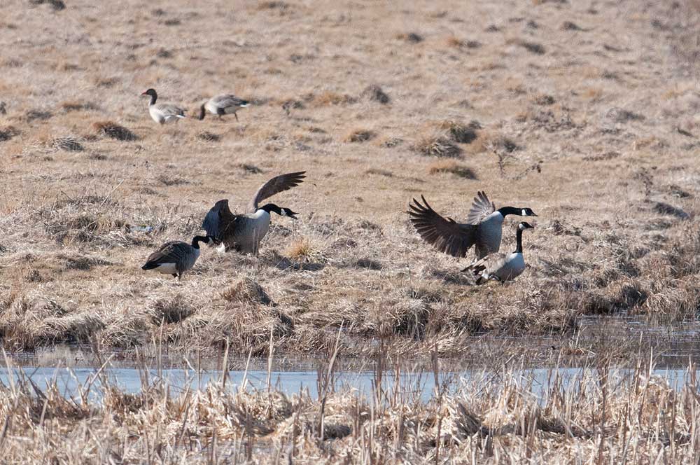 I dag var det tre par kanadagäss, vilket naturligtvis bäddade för bråk. Två av dagens fyra grågäss syns i bakgrunden.